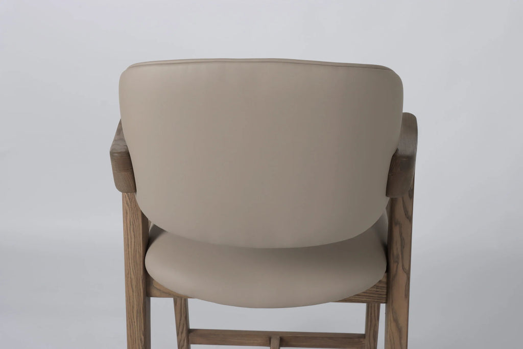 Ellie Counter Stool — Designed for comfort and style, the Ellie features a 67cm seat height, ideal for kitchen islands around 90cm high. Crafted from solid oak and finished in our loba stain, it’s paired with a beige PU wipeable seat for effortless maintenance and everyday durability. With dimensions of 50W x 98H x 56D cm, this stool blends timeless craftsmanship with modern practicality.