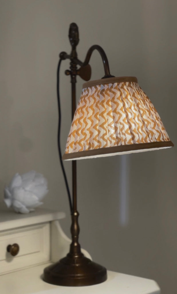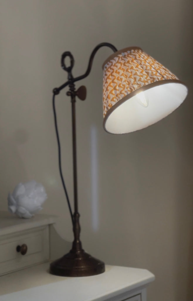 Crafted from gleaming brass and adorned with a luxurious fabric head, this exquisite lamp embodies elegance and sophistication. Its soft, diffused light creates a cozy and inviting ambiance, perfect for relaxed evenings and intimate gatherings.