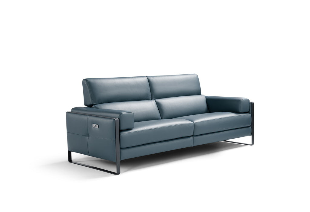 This sofa with a modern design and sober and regular lines features the detail of the metal band framing the armrests defined by contrasting tailored stitching, which adds strength and character to the whole set. Daunia, available in leather or fabric, is also extreme comfortable thanks to its recliner functions, with double motor reclining seat and vertical headrest which can also be manually tilted forward.