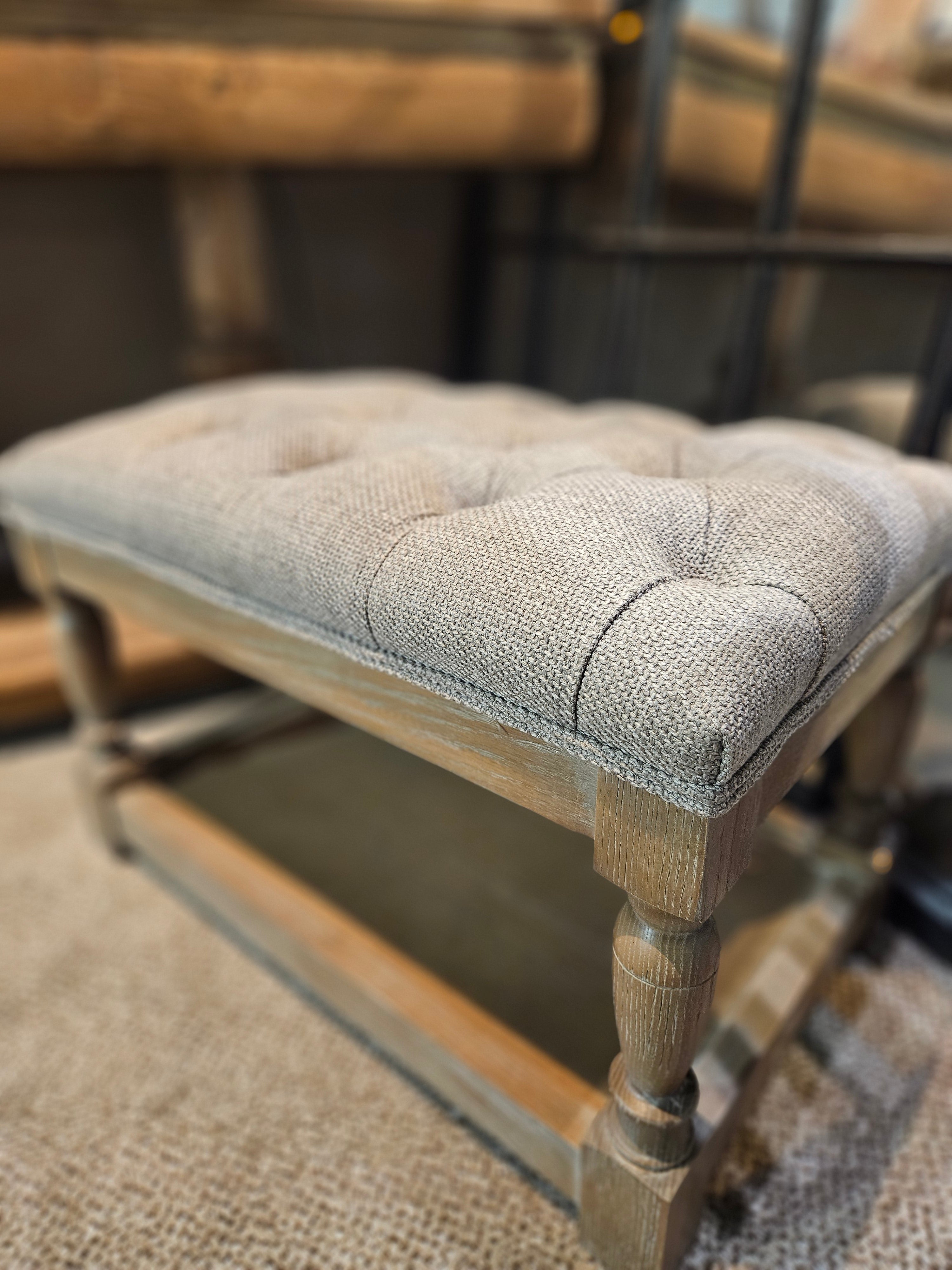 This Mini Ottoman in taupe is an ideal addition to compact spaces like hallways or boot rooms or even as a footstool. Its small size offers a cozy spot to sit or rest your feet without taking up much room. The neutral beige color blends effortlessly with various decor styles, making it a practical and stylish choice for your home.