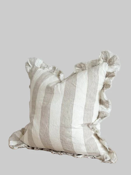 Natural Wide Stripe Ruffle Cushion 53x53cm