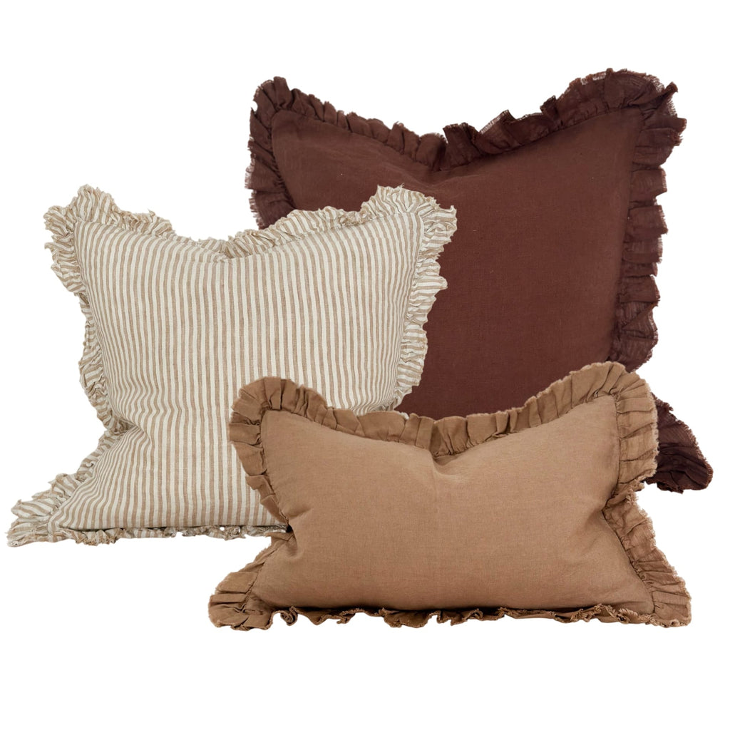 Light Brown Stripe Ruffle Cushion 45x45cm