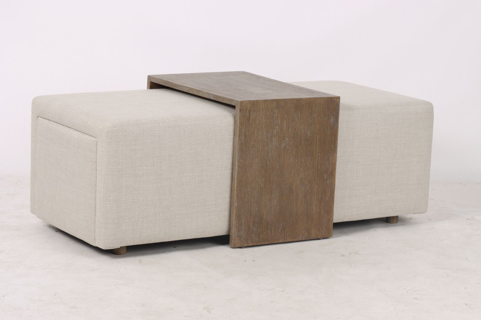 A taupe linen bench with deep button tufting and a French wash finish. Measuring 118x55x45cm, it offers versatile seating or a decorative accent for bedrooms, living rooms, or entryways.