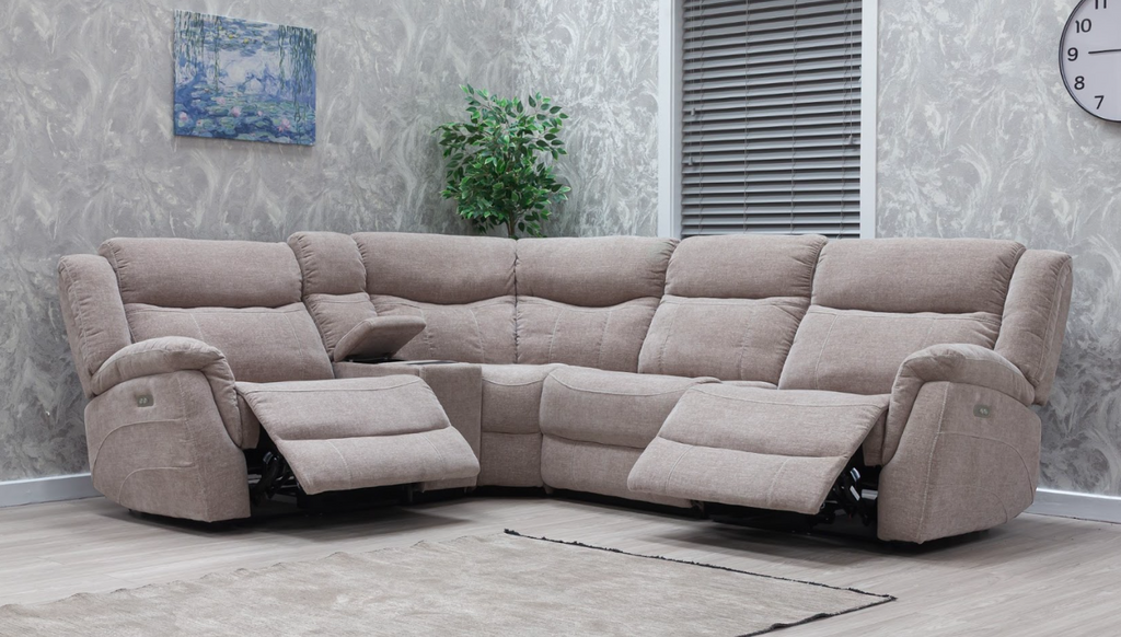 The Lorenza Champagne 2 Seater Sofa features elegant champagne-coloured upholstery and electric recliners. This luxurious sofa combines sophisticated style with modern comfort technology for the ultimate relaxation experience.