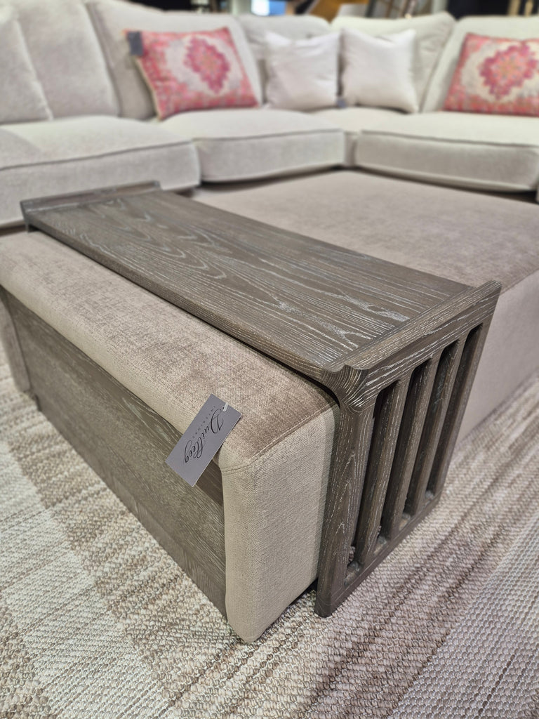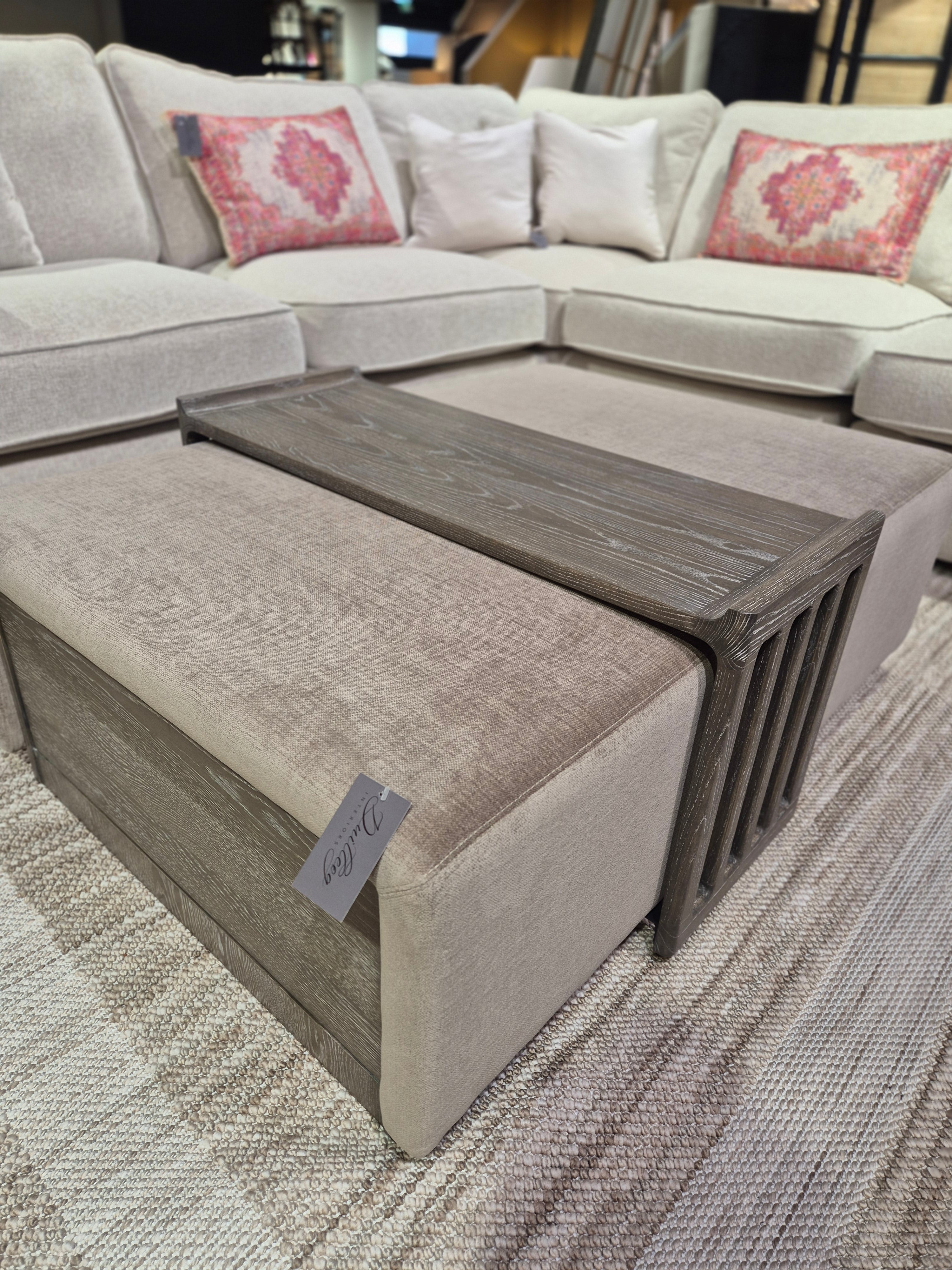 Sliding Tray Footstool Mink Chenille (Aqua Clean)