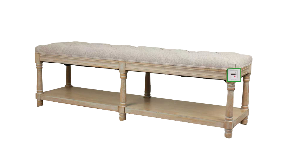 Taupe Linen Deep Button Bench French Wash 115cmx40cmx47cm