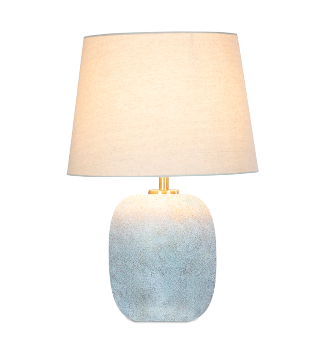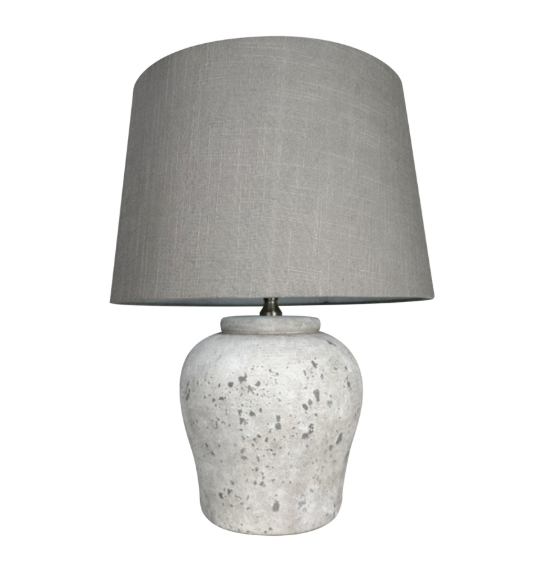 Round Ceramic Textured Lamp With Linen Shade 62x45cm