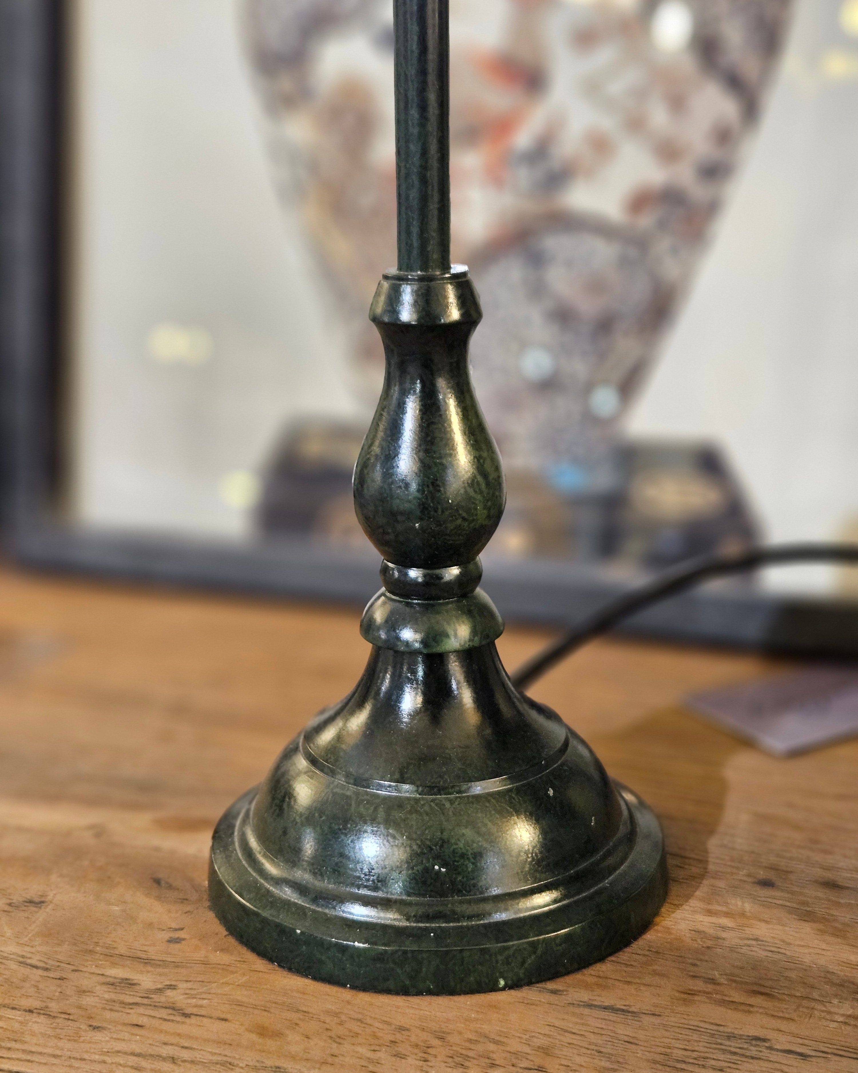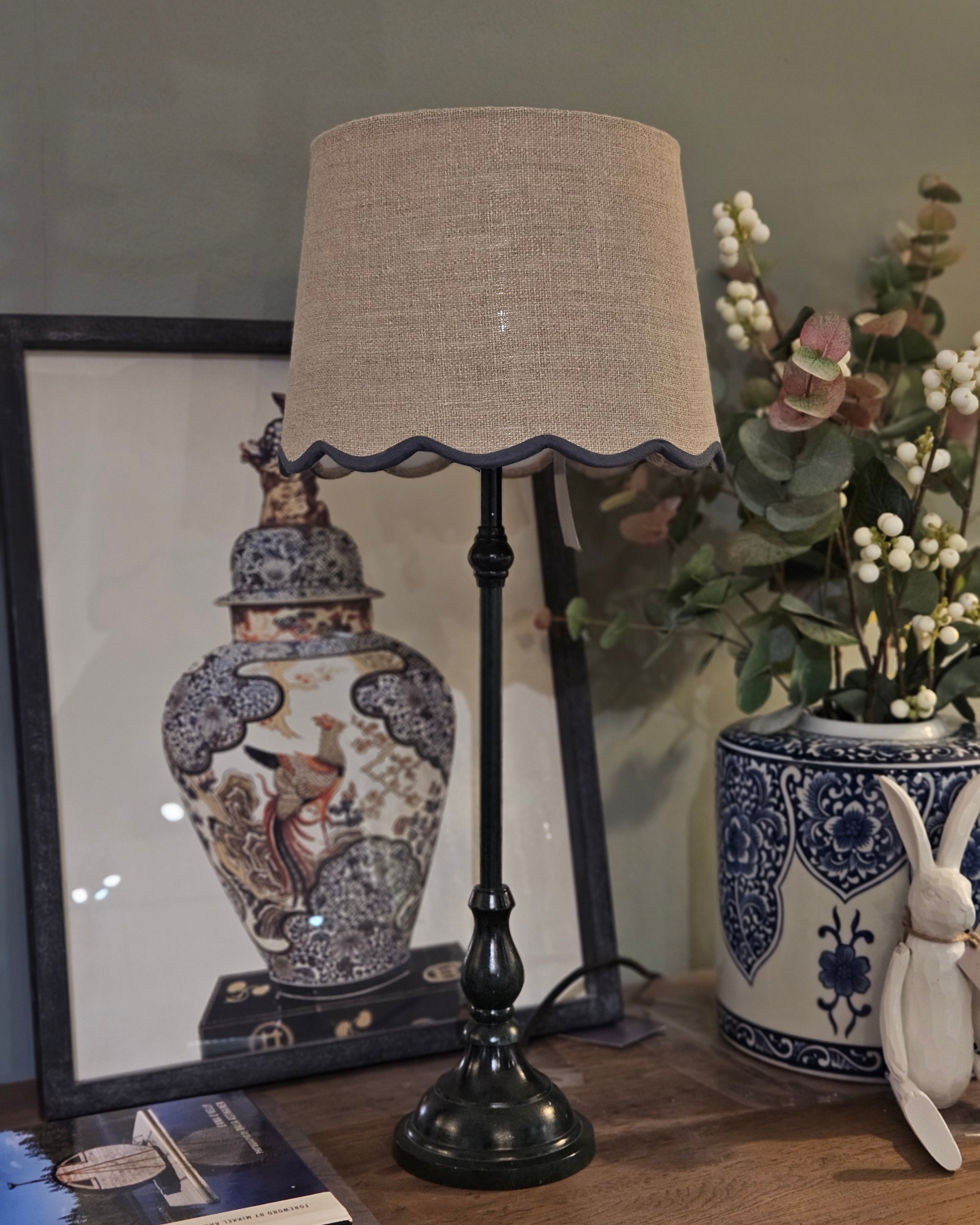 Slim Table Lamp with Blue Scalloped Linen Shade