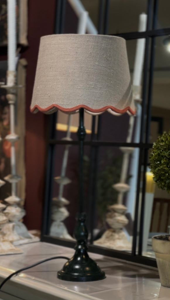 Slim Table Lamp with Red Scalloped Linen Shade 56cm