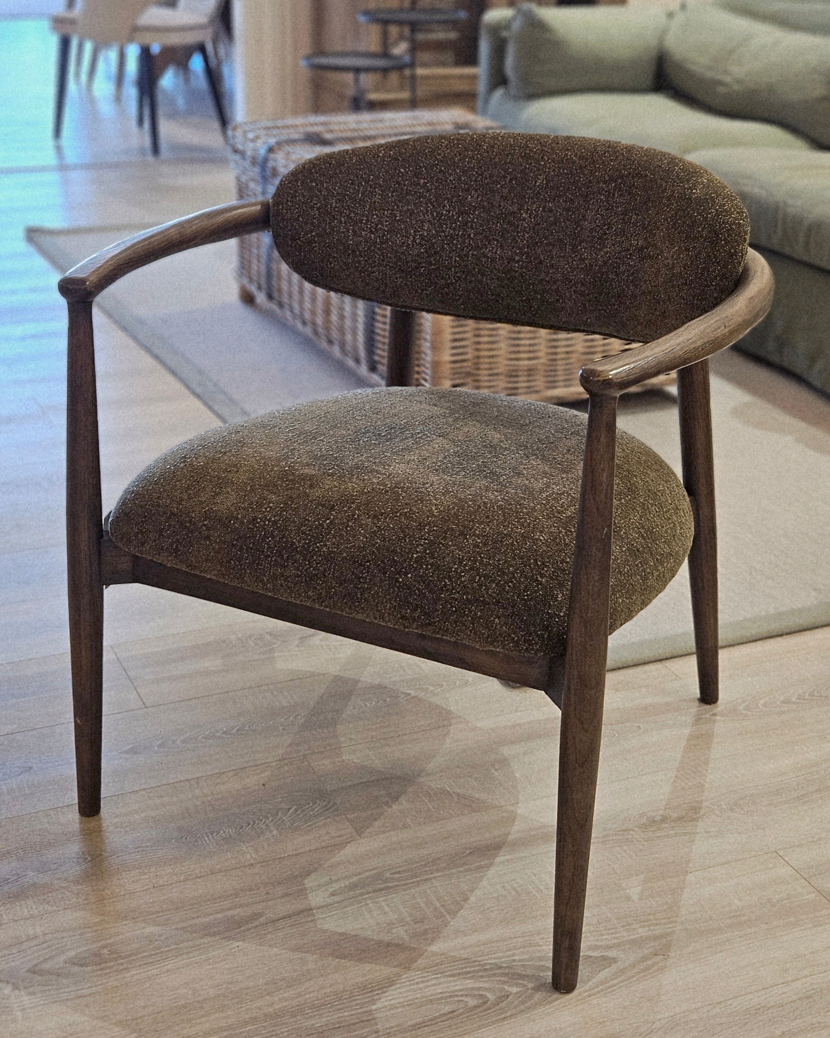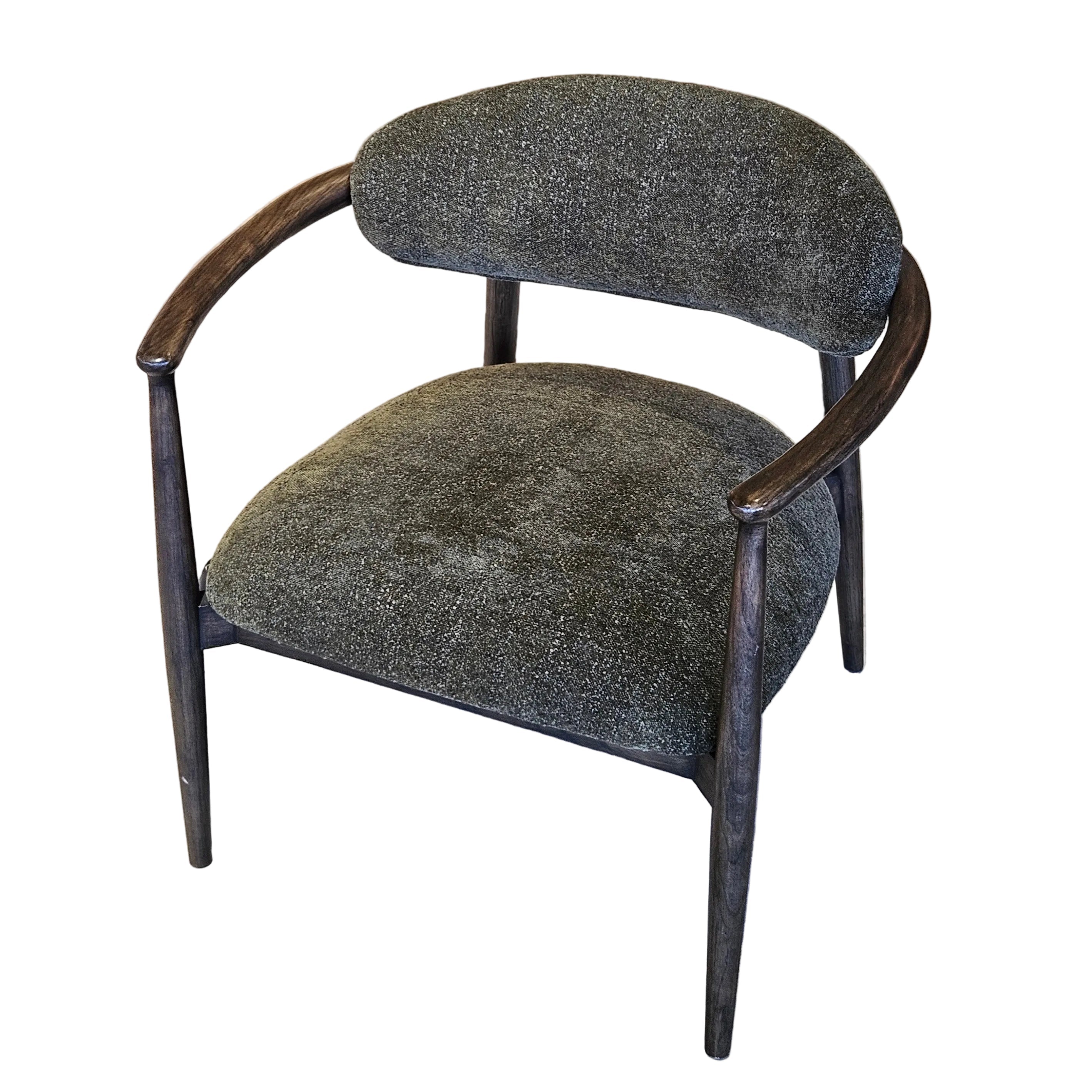 The Joanna Chair features a soft green boucle fabric that adds texture and comfort to your dining space. Its walnut-stained legs provide a warm, natural contrast, creating a stylish and inviting seat perfect for everyday meals or casual gatherings.
