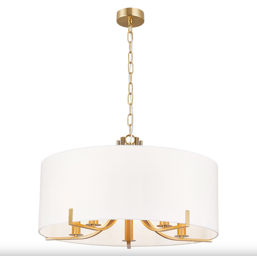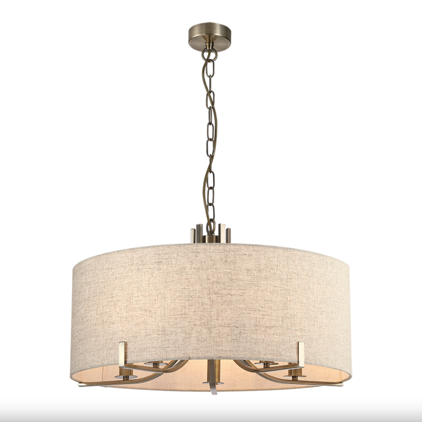 5 Light Stylo Satin Brass Pendant Navy Shade