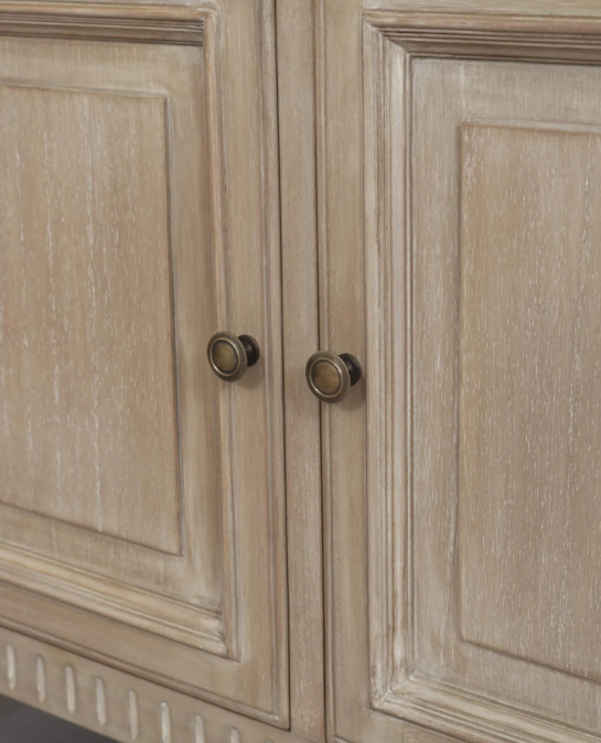 A versatile and spacious sideboard offering abundant storage with a relaxed, natural aesthetic. Featuring a beautiful washed timber finish, it combines two drawers and two cabinets to neatly organize your dining or living room essentials. A stylish storage solution that blends rustic charm with practical, organized function.