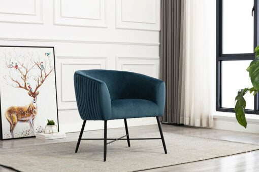 The Zara occasional chair demands attention as it sits quietly in position dressed in luxury velvet and standing proud on its design-led black metal legs. It has a lot to offer, a spacious deep cushion for ultimate comfort, rounded back which flows effortlessly forming arms but it holds one more design feature it needs to show off – the stunning linear detailing that sweeps from one arm to the other. It’s quite happy standing alone showing off its stunning features but will also be happy with the company of a cushion and throw to snuggle up with.